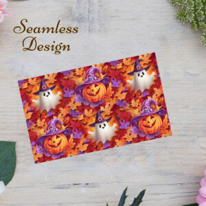 20oz Skinny Tumbler – Fall Leaves Ghost and Jack-o-Lantern